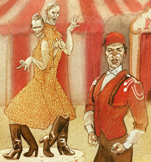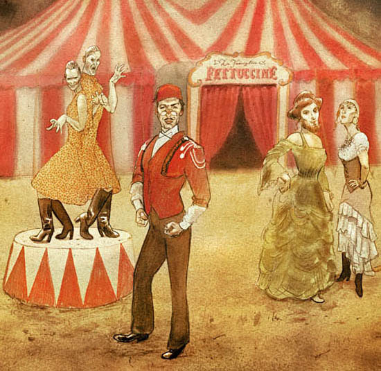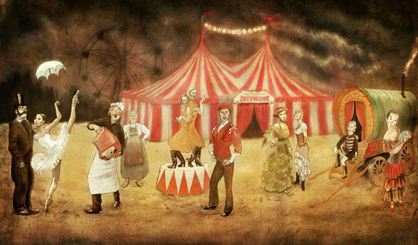 Large groupportrait (1m / 1,70m) of a old Circus family.