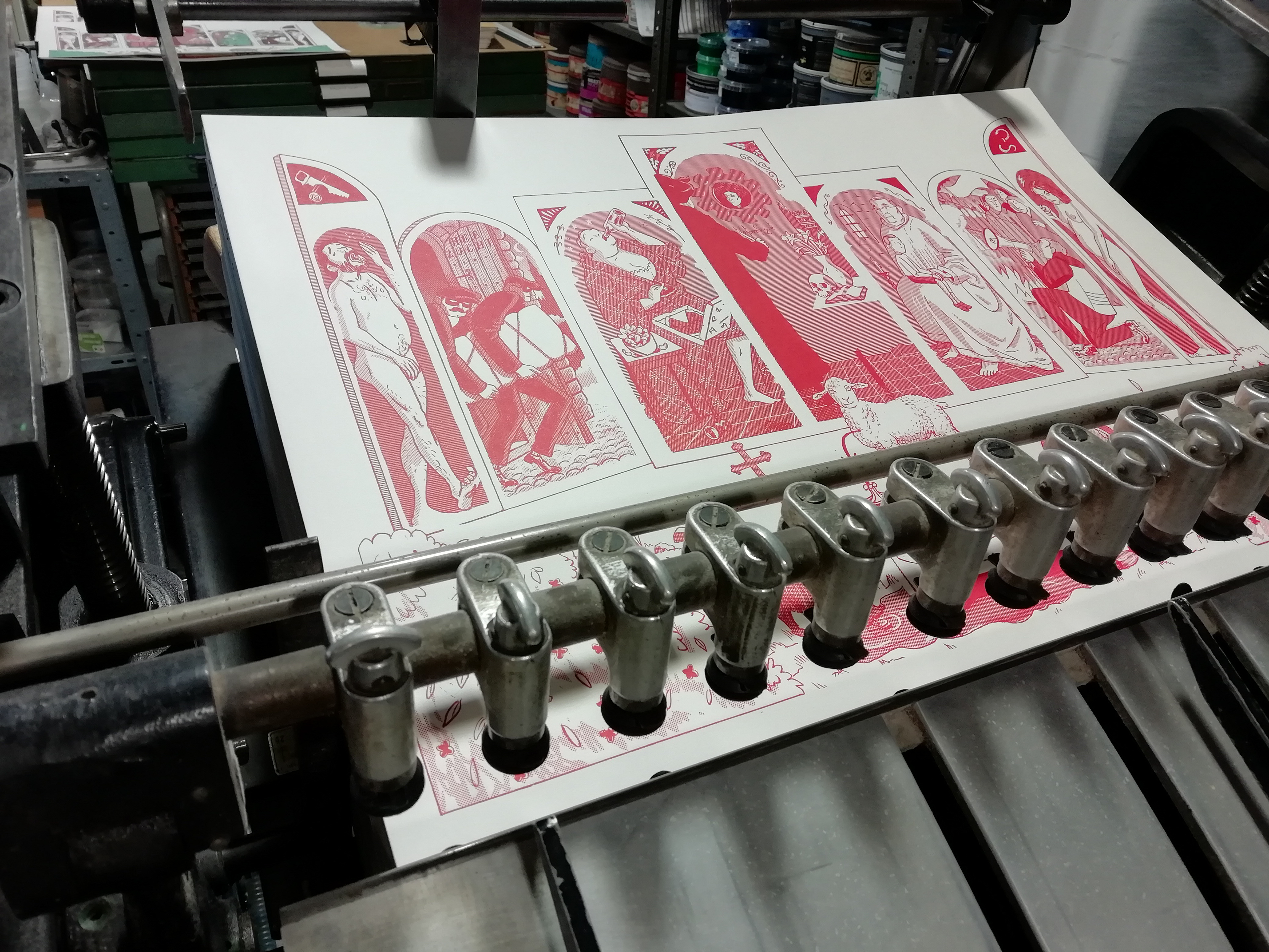 2020, the city of Ghent is celebrating Van Eyck with a special festive year full of events and activities. Printer Jozias Boone invited me and some fellow illustrators from Ghent for a Van Eyck homage series, printed in a limited edition in 2-color letterpress.